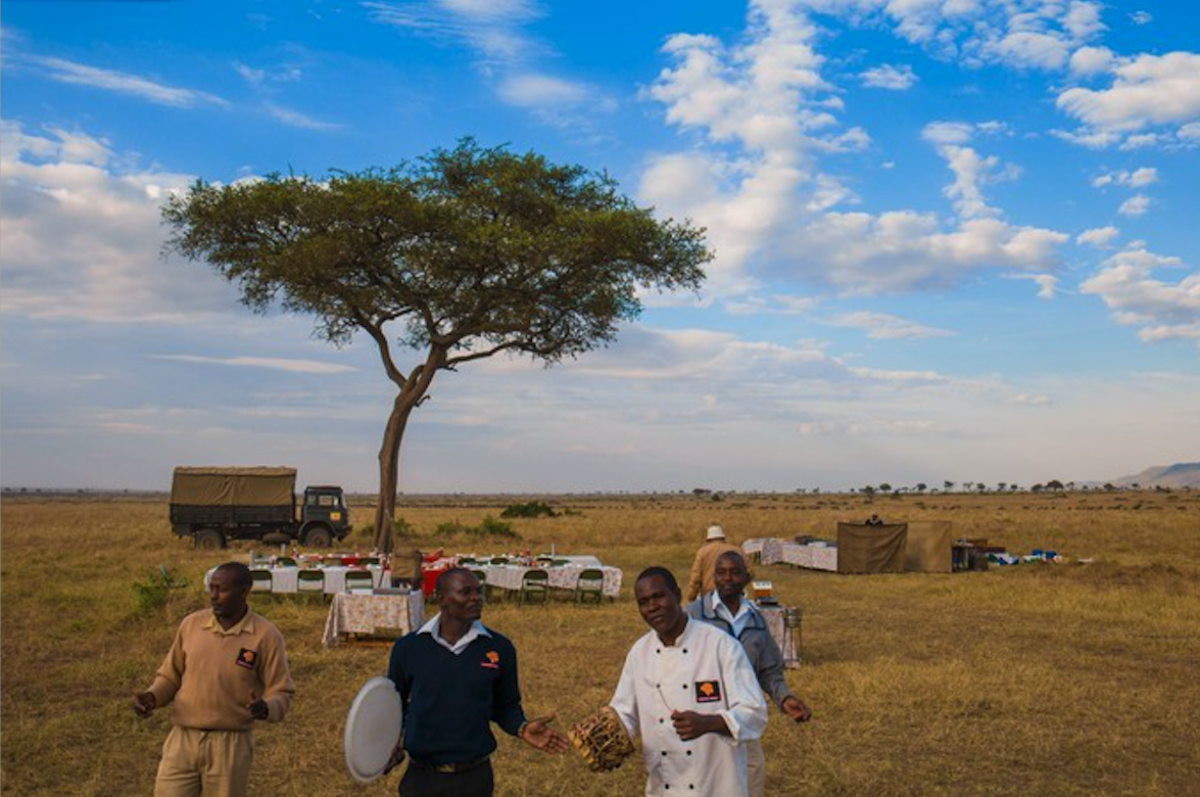 - 草原早餐:一杯庆祝飞行的香槟,一场铺在草原上的热食早餐会
