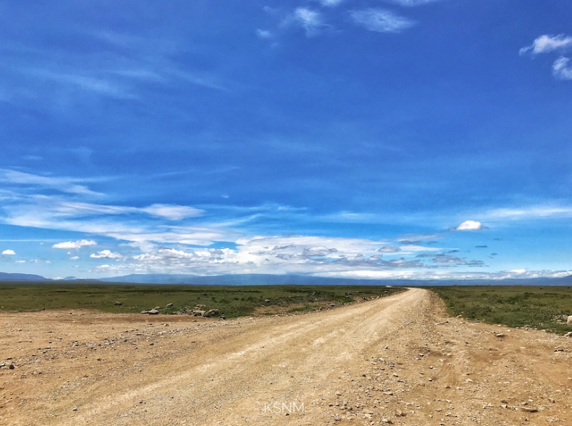 从恩戈罗山口的西侧道路绕行而下,再次回到东非草原地带,这里的沙土路十分平坦,进入塞伦盖蒂景区已经可以陆续在路边看见小群的动物悠闲地吃草。不时还可以看见狮群会猎剩下的片片白骨。