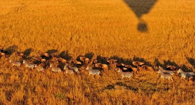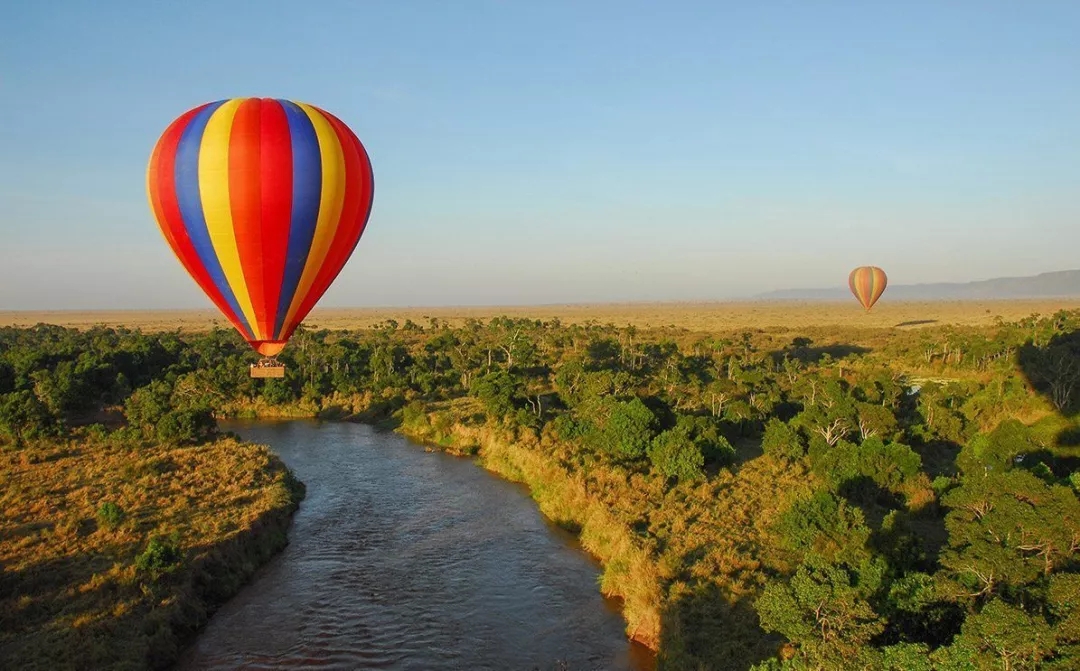 热气球能瞬间激发少女心,屡试不爽,更何况是在大草原上升空。低头看,小动物们在晨曦里奔跑着,一抬眼,大草原从沉睡中慢慢被唤醒,沉浸在这么甜美的图景里,要不浪漫也很难。